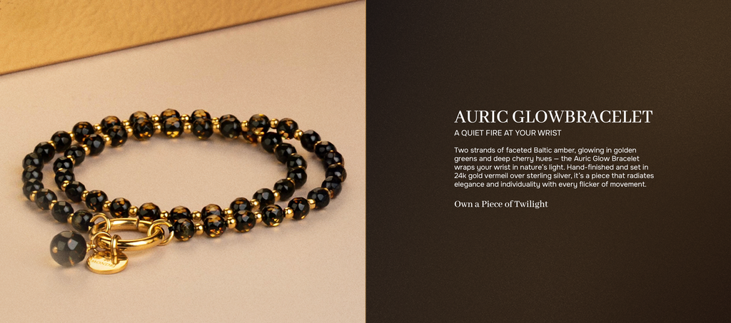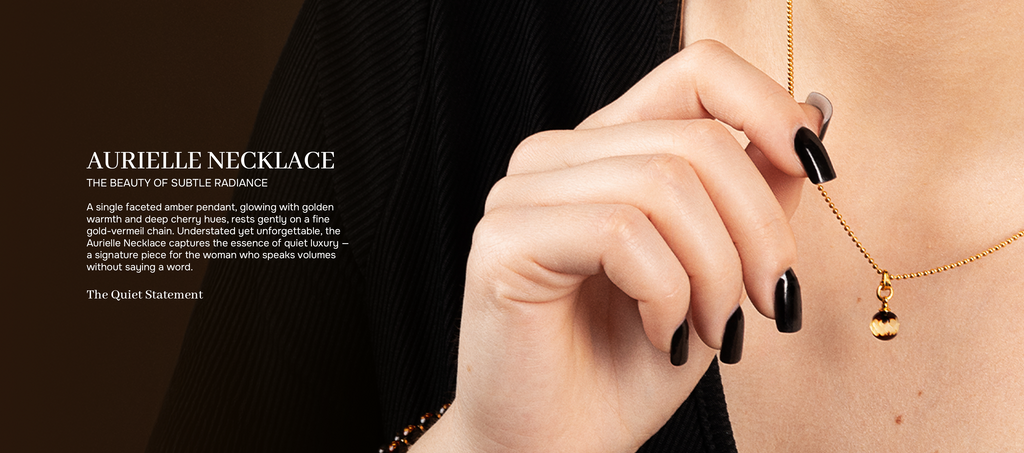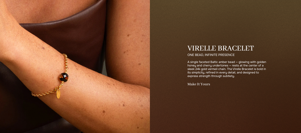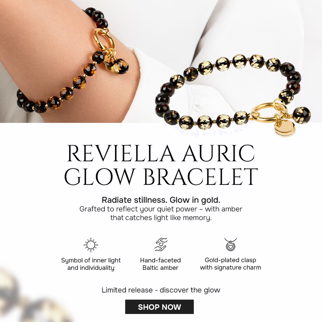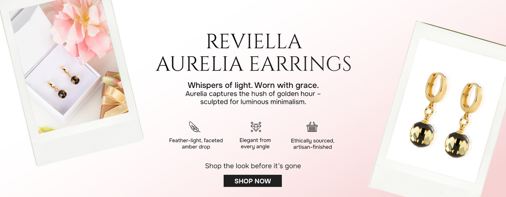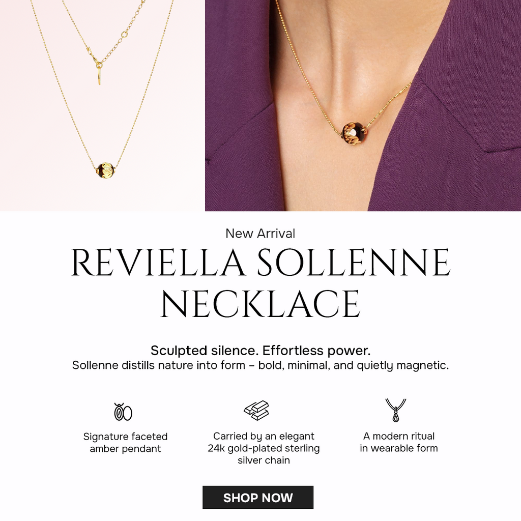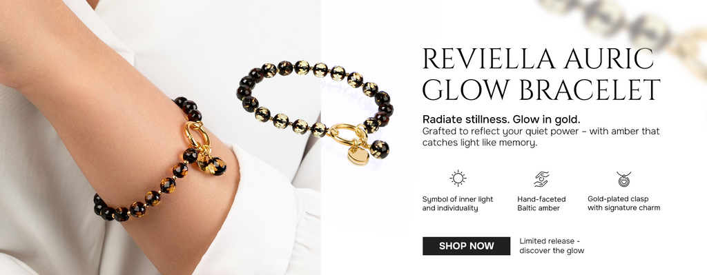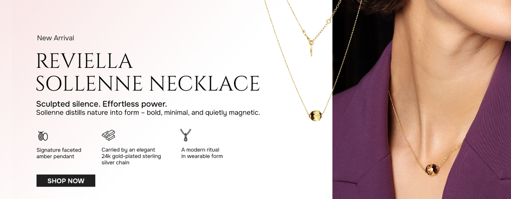 Each Reviella piece is made in small batches using authentic Baltic amber and premium metals like 925 sterling silver with thick 24k gold vermeil. No two stones are alike — each bead is shaped by nature and hand-finished by artisans, ensuring your jewelry is as unique as you are.